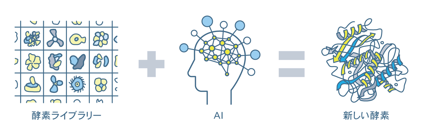 酵素を自在に設計できるようになれば、特定の機能をもつ酵素だけでなく、未知の機能をもつ多様な酵素をあらかじめ作り、ライブラリー化しておくこともできます。創薬の世界では、数万~数十万種類の化合物をスクリーニングして有効な候補を探す作業が行われています。酵素でも同じように、膨大な種類を作れるようになっておけばAIと組み合わせることでこれまでにない有用な反応経路を効率的に見つけることもできるようになるでしょう。